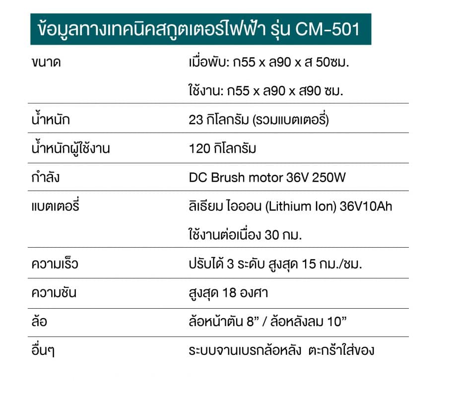 “ให้ทุกการเดินทางของคุณง่ายและพิเศษยิ่งขึ้น ด้วยสกู๊ตเตอร์ไฟฟ้า รุ่น CM-501 จากครู๊ซเมท”
